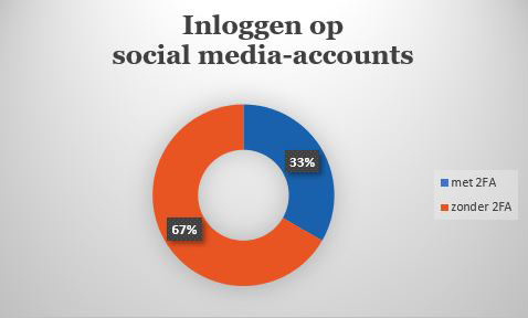Bij het inloggen op social media-accounts geeft een derde van de respondenten aan gebruik te maken van 2 factor authenticatie (2FA).
